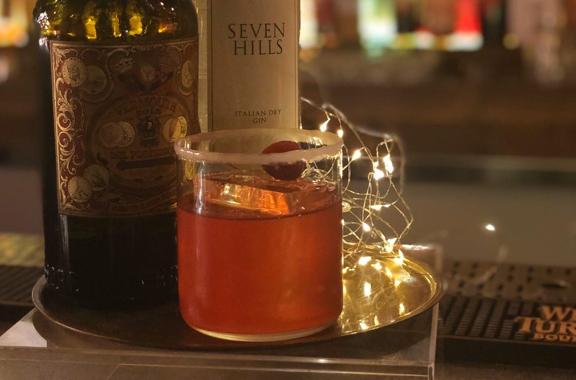 Ingredienti: 45ml di Vermouth Del Professore Classico infuso ai lamponi; 45 ml VII Hills Italian Dry Gin; 7,5 riduzione di bitter rosso all’arancia; 4 drops bitter ai chiodi di garofano; rim di cioccolato bianco ai petali di fiori; oro edibile in polvere. Bicchiere: Old Fashioned. Guarnizione: polvere d’oro edibile e un lampone.