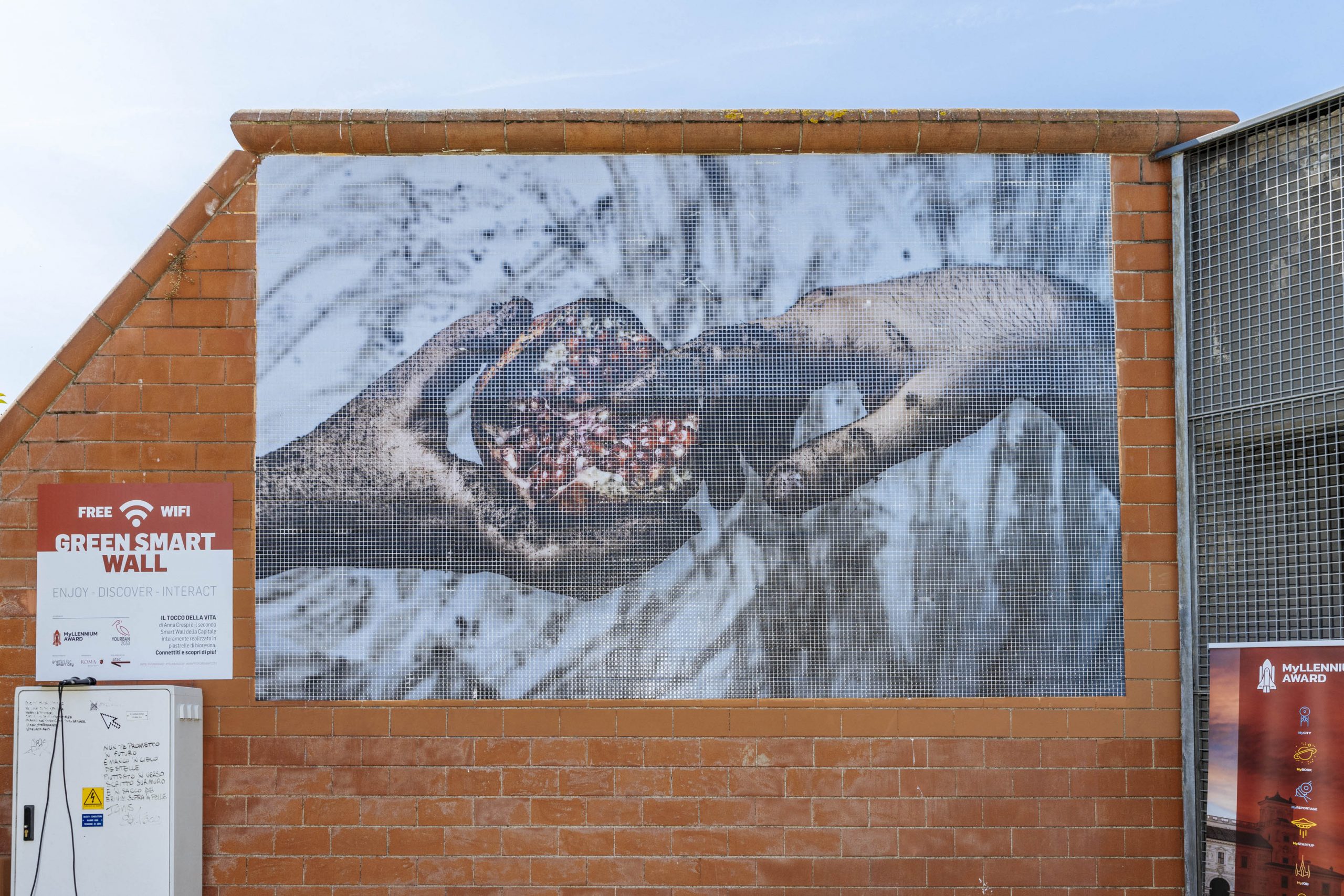 È stata così inaugurata “Il Tocco della Vita” di Anna Crespi, giovane fotografa vincitrice del premio speciale Yourban2030 per la sezione MyCity del Myllennium Award: un nuovo smart wall per la Capitale, dopo The Endless Growth di Jordi Bello Tabbi, vincitore di MyCity nel 2021.