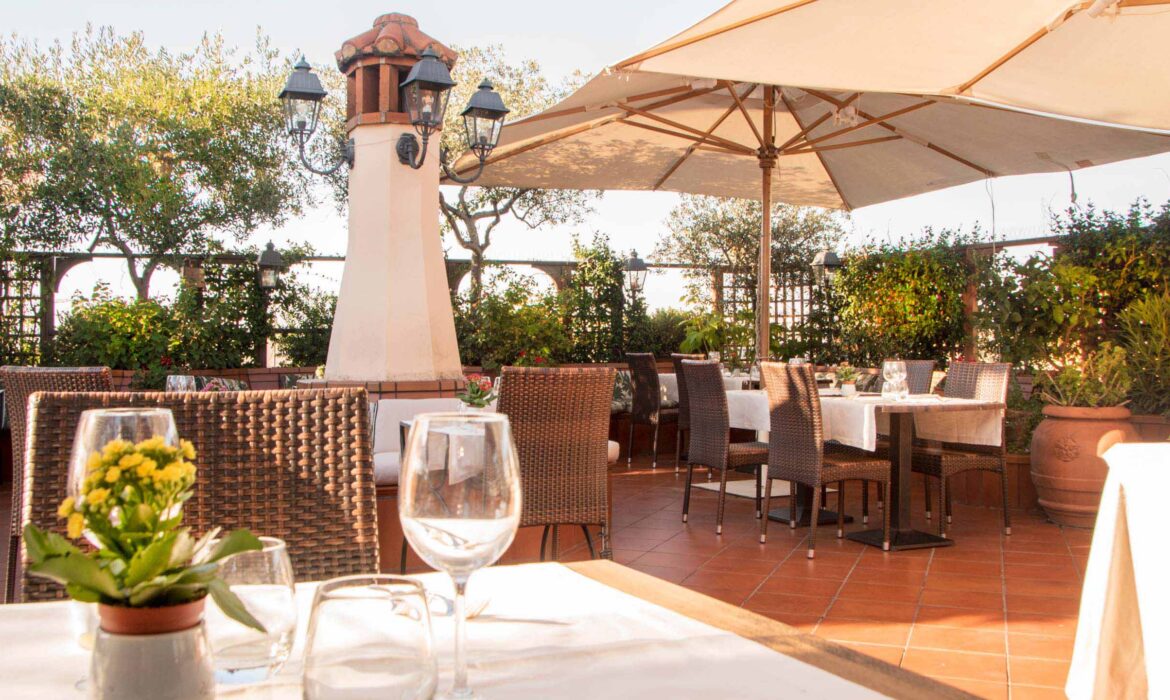 La grande terrazza al 7° piano dell’Hotel Diana immersa nel verde e gli ulivi, dove la vista spazia a 360° sulla capitale, permette di assaporare le proposte gourmet all’aperto e soprattutto in sicurezza. Un’oasi di pace e relax dove trovare rifugio, in particolare nella torretta con vista panoramica, ideale per un esclusivo brunch a due, in assoluta privacy.
