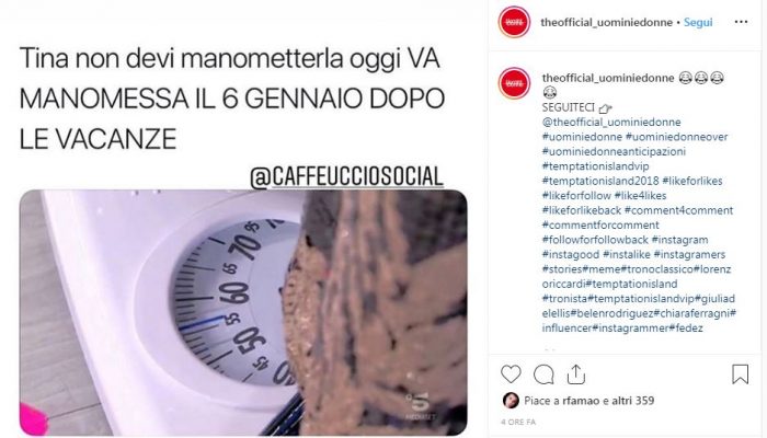 Tina è riuscita a perdere almeno 10 kg, anche se il risultato finale -post vacanze natalizie- della sua dieta è avvolto nel mistero: alla proposta di Maria De Filippi di salire sulla bilancia nella prima puntata post Epifania, Tina non ha reagito benissimo.