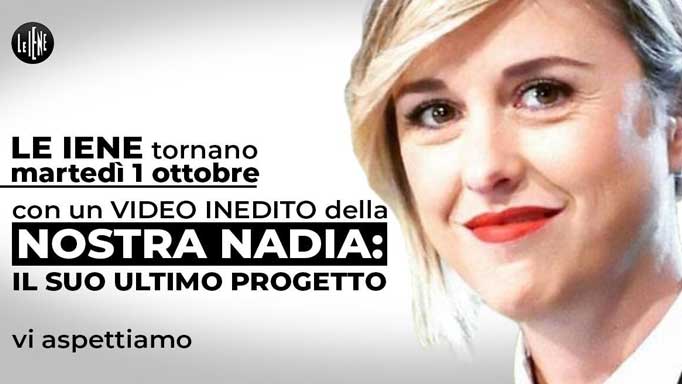 Le Iene ripartono senza Nadia Toffa. Dopo la prematura scomparsa della conduttrice avvenuta pochi giorni prima di Ferragosto, lo storico programma di Italia 1 è pronto a tornare in onda il 1 Ottobre con una nuova conduzione. Ci vorrà del tempo per abituarsi all’assenza di quel sorriso contagioso, ma il suo ricordo resterà indelebile nel cuore di chi l’ha amata e seguita in tutti questi anni. Sarà proprio un filmato inedito a rendere omaggio alla guerriera Nadia Toffa: ecco cosa tratterà il video realizzato pochi mesi prima della sua morte