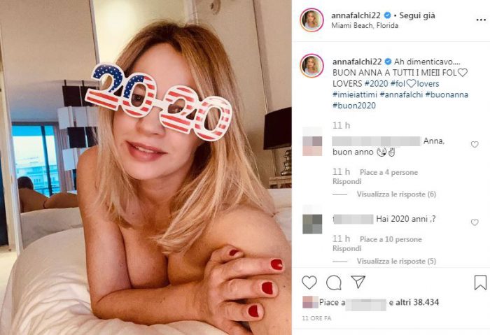 Sul volto, un paio di occhiali simpatici a forma di 2020 decorati con la bandiera degli Stati Uniti. “Ah dimenticavo…. BUON ANNA A TUTTI I MIEII FOL-LOVERS” ha scritto ironicamente e nella caption che accompagna la foto hot.