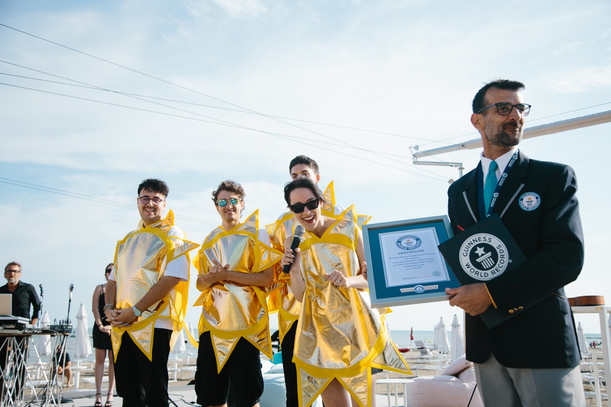 E record fu. Grado è la cornice del nuovo titolo che si inserisce nei Guinness World Records. La località del Friuli Venezia Giulia ha, infatti, ospitato il più grande raduno di persone vestite come il sole battendo il precedente primato raggiunto in Canada solo qualche settimana fa. L’appuntamento si è tenuto l’11 giugno con madrina Aurora Ramazzotti insieme ai creator LolloBarollo, Roccotnl e Il Ginnasio.