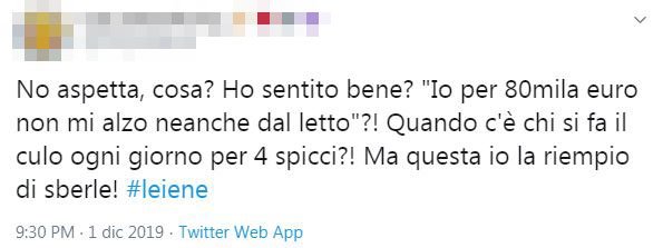E qualcuno, propone un’incisiva forma di protesta: “‘Per 80.000€ non mi alzo neanche dal letto’ … sarebbe bello un defollow di massa … vedi poi come si alza anche per meno”.