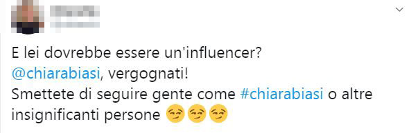 “E lei dovrebbe essere un’influencer? Vergognati! Smettete di seguire gente come lei o altre insignificanti persone” aggiunge un’altra utente sdegnata.