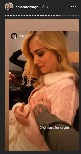 Come mostra la breve clip che la stessa Chiara Ferragni ha condiviso nelle Storie di Instagram, Fedez è seduto vicino a lei. Il rapper, con un mano tiene lo smartphone per registrare il video, con l’altra va alla scoperta del corpo della moglie.