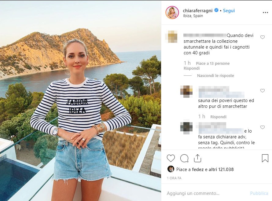 C’è chi ad esempio crede che la foto sia stata dettata dalla necessità di cominciare a promuovere la collezione autunnale “anche con 40 gradi” e c’è chi addirittura la accusa di fare pubblicità “senza dichiarare adv, senza tag. Quindi, contro le regole delle pubblicità”.