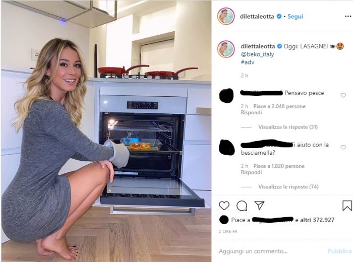 Infatti la foto di Diletta che sforna una lasagna è stata scattata e pubblicata di proposito, ma a scopo commerciale. Ebbene nella foto incriminata Diletta Leotta posa per una foto per Beko, una nota azienda produttrice di elettrodomestici, sponsor anche della squadra del Barcellona, tra l’altro. Il post instagram, che in realtà è una collaborazione tra la showgirl e l’azienda, ha raggiunto sicuramente il suo scopo. Diletta Leotta è riuscita ancora una volta a porsi sotto la luce dei riflettori. Ma sarà riuscita a dare visibilità a Beko? O gli occhi di tutti si saranno fermati solo su di lei?
