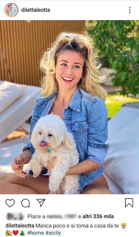 “Manca poco e si torna a casa da te”, ha scritto infatti, ma l’attenzione dei fan più che sul cagnolino si è posata sulle gambe di lei. A ben vedere, infatti, pare che Diletta Leotta non indossi affatto la biancheria intima e che utilizzi addirittura il cagnolino per coprirsi.