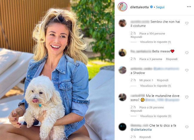 Diletta Leotta pubblica su Instagram una foto insieme al suo cagnolino ma tra i fan sorge un dubbio: la giornalista porta gli slip o è senza biancheria intima?
