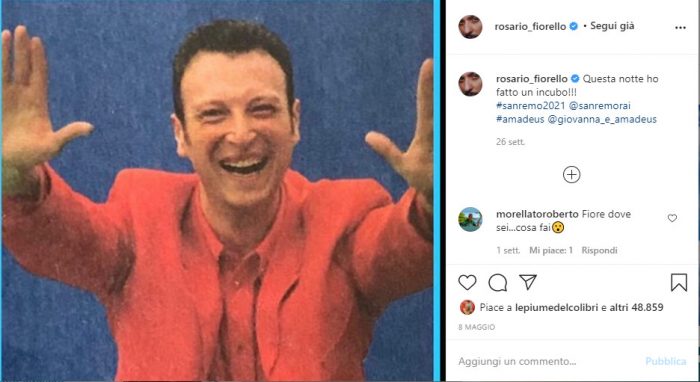 L’ultimo post di Rosario Fiorello su Instagram è del 6 settembre: è una foto di Amadeus da giovane e la didascalia, scherzosamente, fa riferimento al Sanremo 2021. Proprio sotto a questo post si sono accumulati i tanti commenti di chi chiede allo showman come sta, cosa fa e come mai è così assente in questo momento.