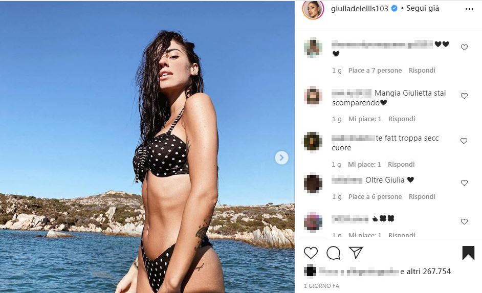 “Giuly mangia di più, sei dimagrita tanto”, scrive un’utente. E un’altra le fa eco: “Mangia Giulietta, stai scomparendo”. E c’è chi, in napoletano stretto, le dice “te fatt troppo secca, cuore!”.