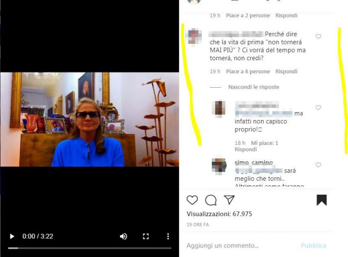 Intanto, qualche utente però, resta perplesso dalle sue parole. “Perché devi dire che la vita di prima non tornerà mai più? Ci vorrà del tempo ma tornerà, non credi?” commenta qualcuno. “Infatti, non capisco proprio” aggiunge qualcun altro.