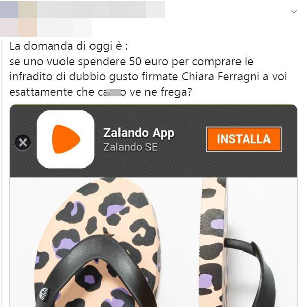 “Chiara Ferragni è simpaticissima e tutto ma 50 euro per delle infradito è folle” osserva con indignazione qualcuno su Twitter, ritenendo al massimo 20 euro un prezzo accettabile.
