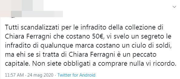 Non tutti però criticano l’influencer, anzi. C’è ad esempio chi pensa la cifra non sia esagerata “considerando che quello di Chiara Ferragni è un brand di lusso”.