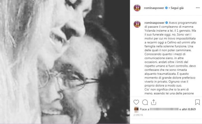 Non passa inosservato il ritardo con cui la Lecciso ha voluto ricordare la signora Jolanda, soprattutto se si considera che Romina Power è da ieri pomeriggio che pubblica post su Instagram dedicati all’ex suocera.