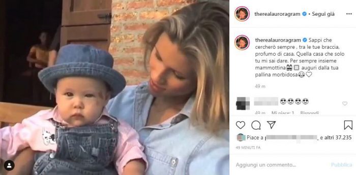 “Sappi che cercherò sempre, tra le tue braccia, profumo di casa. Quella casa che solo tu mi sai dare. Per sempre insieme mammottina. Auguri dalla tua pallina morbidosa” scrive la sua primogenita a corredo di una vecchia foto.