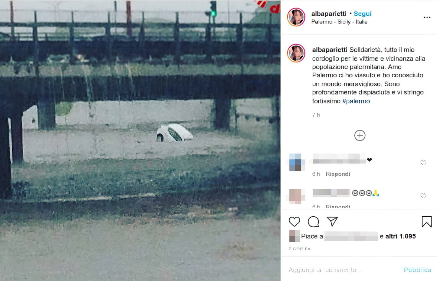 Oltre a Rita Dalla Chiesa, a lasciare un messaggio di cordoglio per Palermo c’è anche Alba Parietti, che esprime tutto il suo dolore da Instagram.