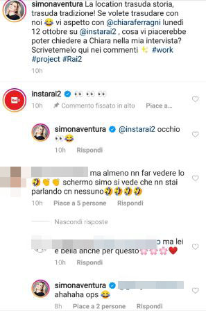 “Ma davvero la vuoi dire questa cosa? Qui la location è pazzeschissima, te lo dico, trasuda storia, trasuda tradizione. Arte contemporanea a iosa… Ma sei sicura? Perché guarda che si sarà un sacco di gente, eh. Siamo su Rai2, la tv generalista. Non vedo l’ora, ti aspetto!”.