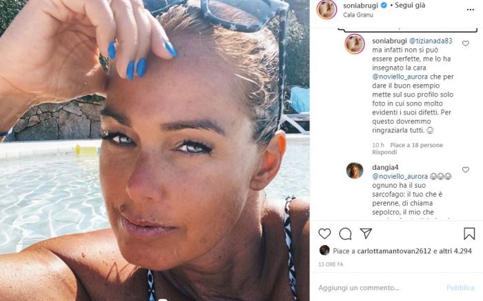 Anche stavolta Sonia non ha esitato a rispondere alle critiche sotto una foto pubblicata dalla Sardegna: un bel primo piano con una didascalia divertente che fa riferimento ad un contest. Ovviamente fra i tanti complimenti le frecciate non sono mancate ed in particolare è tornata a commentare un profilo che abitualmente interagisce (in maniera negativa) con Sonia Bruganelli.