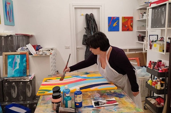 Teresa Coratella: “Lavorare e fare ricerca è importante per un’artista. Ma è altrettanto importante mostrare, divulgare e vendere il proprio lavoro. Ci piace pensare che le persone che comprino un nostro quadro siano felici la mattina quando si alzano, perché i nostri colori e l’energia impressa sulle nostre tele renda armonica la propria casa…”.