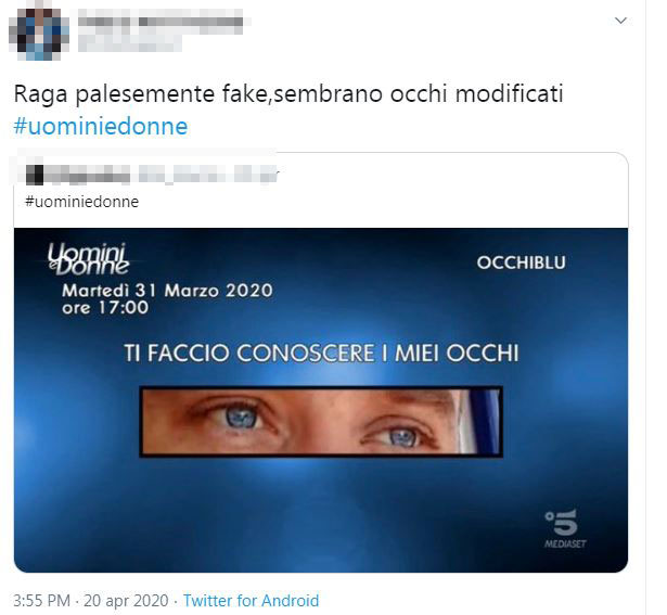 Dopo alcune conversazioni via chat, Occhi Blu ha deciso di inviare una foto dei suoi occhi a Gemma Galgani, protagonista del nuovo format di Uomini e Donne.