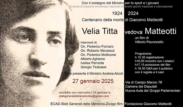 Al via la proiezione del film ‘Velia Titta vedova Matteotti’: un invito al coraggio dell’opposizione per la costruzione di un’Europa e di un mondo migliore
