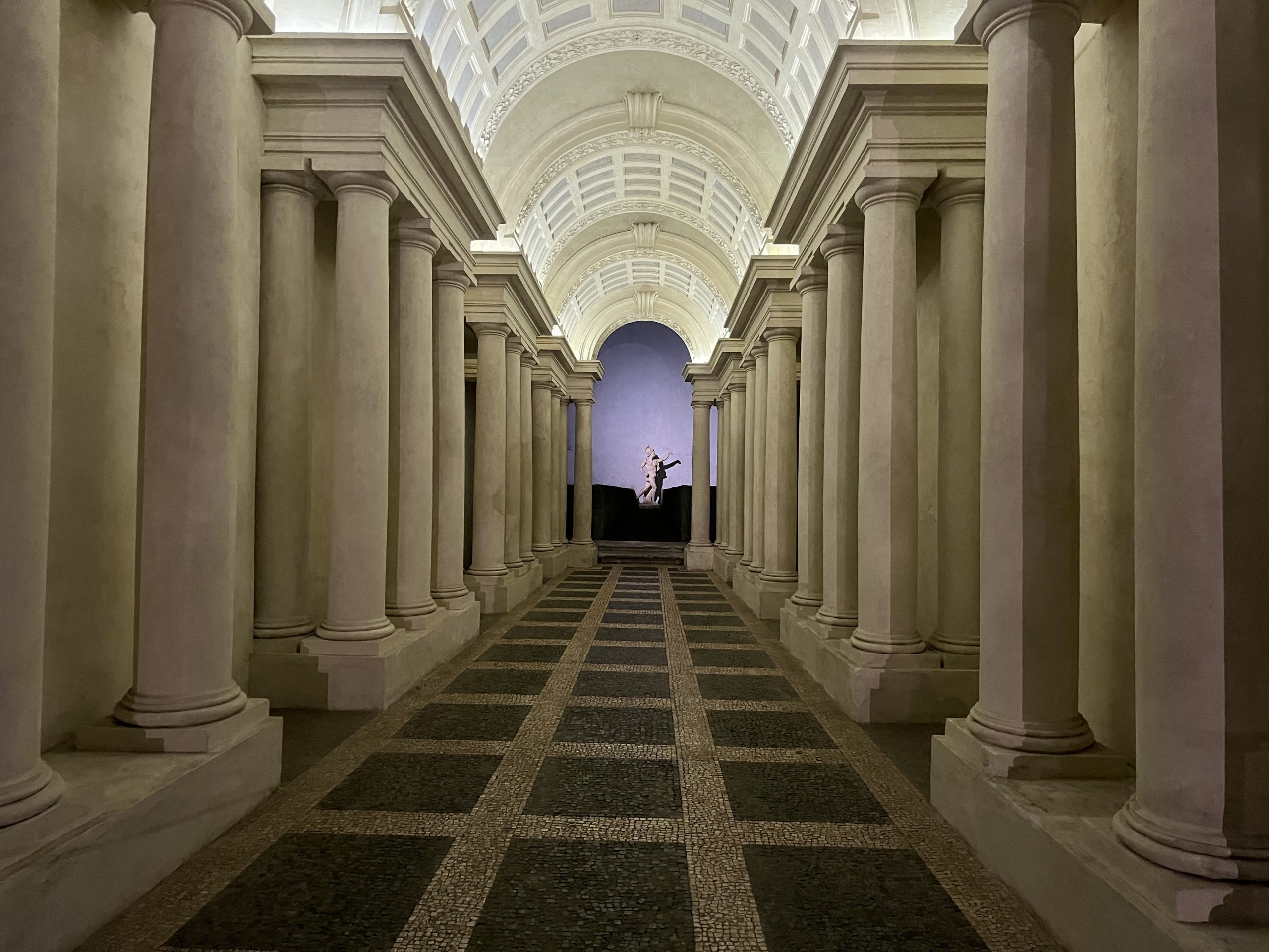Francesco Borromini, però, non si limitò a questo e costruì il suo personale gioiello. Il corridoio prospettico che realizzò nel cortile di Palazzo Spada è un trompe-l’oeil perfetto, che induce lo spettatore a pensare che la statua in fondo sia a grandezza naturale, quando è alta solamente 60 centimetri, creando un effetto reale di falsa prospettiva.