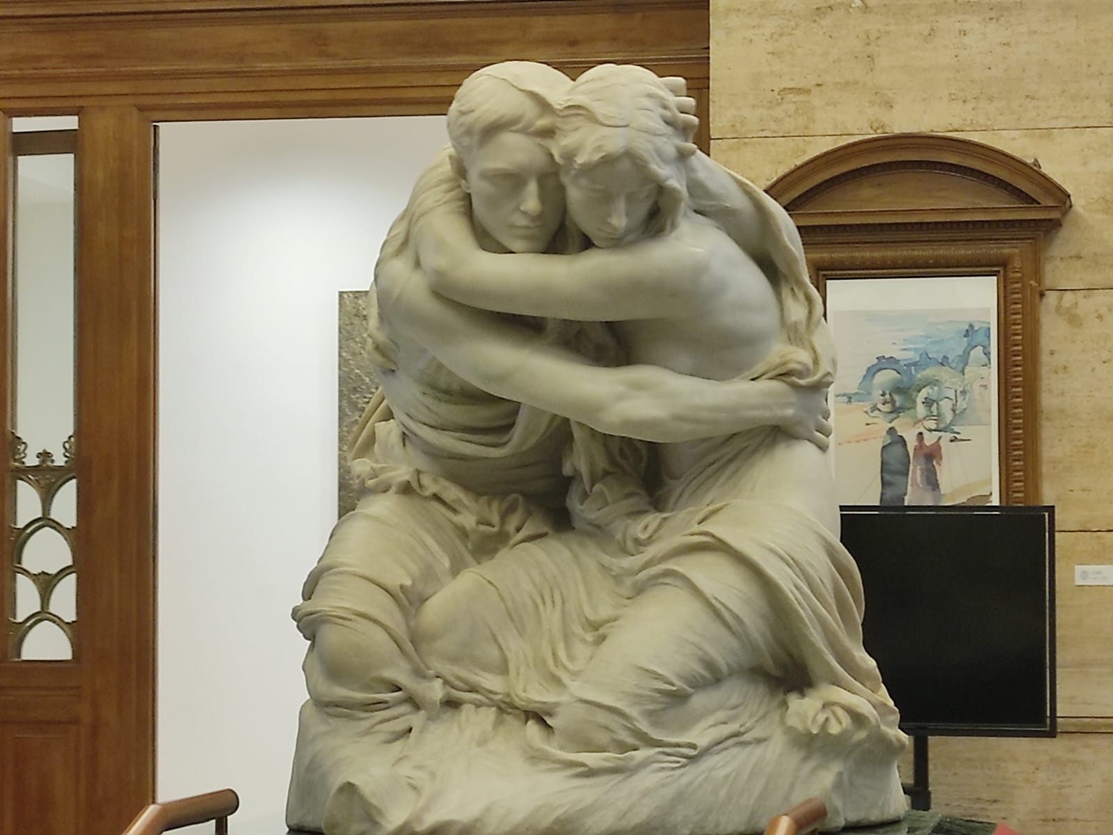 Si tratta naturalmente di una leggenda metropolitana, una di quelle che nascono spontaneamente negli ambienti istituzionali più prestigiosi, dove la solennità dei marmi e il silenzio dei corridoi creano la cornice ideale per superstizioni e piccoli rituali non scritti. Eppure, come spesso accade a Roma, il fascino dell’opera contribuisce a rendere il mito ancora più credibile: l’abbraccio disperato dei due amanti, sospeso sull’orlo del baratro, sembra suggerire metaforicamente il rischio di caduta.