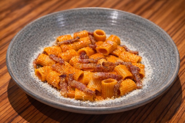 La versione proposta per la prima edizione della Giornata punta tutto sull’equilibrio: passata di pomodoro vellutata, guanciale amatriciano stagionato rosolato lentamente nel suo grasso, pecorino a crosta nera grattugiato e una macinata generosa di pepe nero.