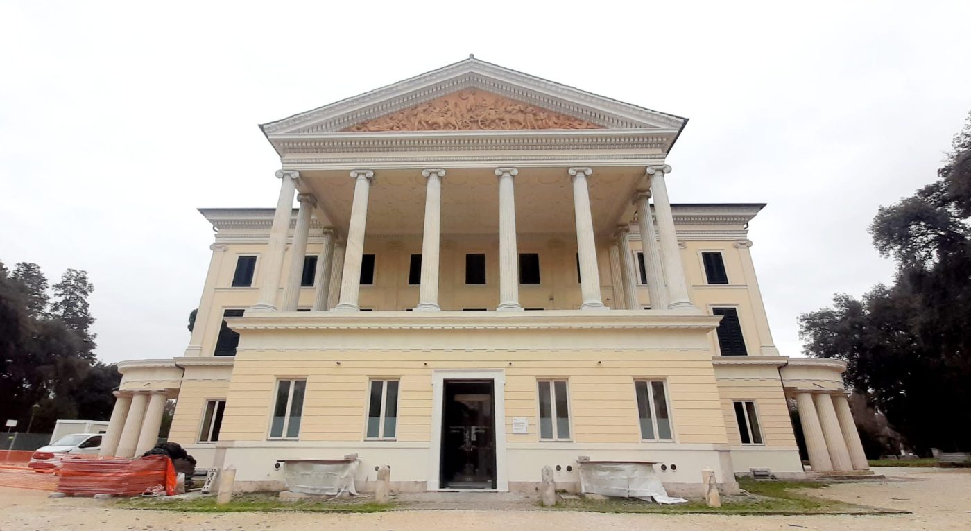 Il Casino Nobile di Villa Torlonia si presenta nuovamente al pubblico nel pieno del suo splendore, a conclusione dei lavori di manutenzione che hanno interessato i prospetti esterni, le decorazioni architettoniche, l’altorilievo del timpano principale e gli infissi lignei. Un intervento che restituisce alla città uno degli edifici più rappresentativi del complesso monumentale, a quasi vent’anni dalla sua prima apertura al pubblico avvenuta nel 2006.