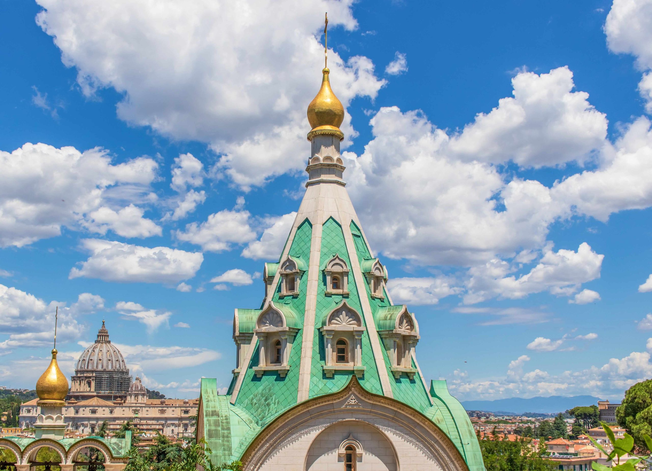 Tra i tetti di Roma ce n’è uno che spicca particolarmente per colore e forma, anche se visibile solo da alcuni punti privilegiati della città: si tratta di una cupola verde acqua, dalla sagoma inconfondibile a forma di cipolla, che sembra essere del tutto fuori posto nel panorama romano. E, proprio per questo, è capace di generare una certa curiosità. Anche perché racconta una storia lunga, complessa e poco nota fatta di resistenze, rinvii e compromessi: quella della chiesa russa che per secoli il papato non voleva vedere sorgere nella Città Eterna.