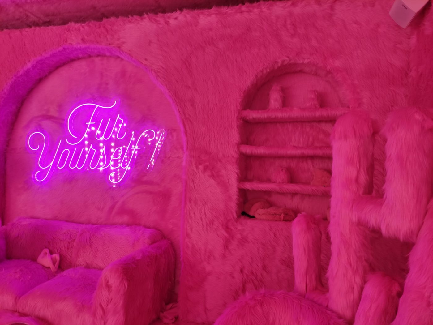 – Nell’ideare la stanza rosa Fur Yourself ti sei ispirata al successo del film Barbie? Sinceramente no, Barbie indubbiamente è stato un film dal grande riscontro mediatico e l’uso del “rosa” ha avvolto un po’ tutti, ma nel nostro caso, il ragionamento sul colore è legato a massimizzare l’effetto del materiale e rendere più avvincente la stanza.