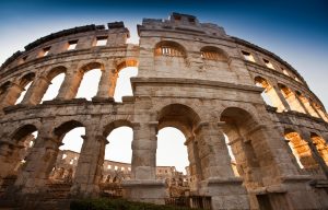 L’Arena di Pola venne costruita tra il 2 a.C. e il 14 d.C. sotto l’imperatore Augusto ed era destinata a ospitare combattimenti di gladiatori e spettacoli.