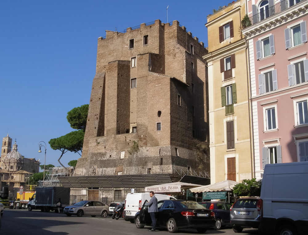 Alla fine dell’Ottocento, con l’apertura di via Cavour e, successivamente, di via dei Fori Imperiali, la torre rimase isolata, divenendo uno dei punti più suggestivi del rione Monti.