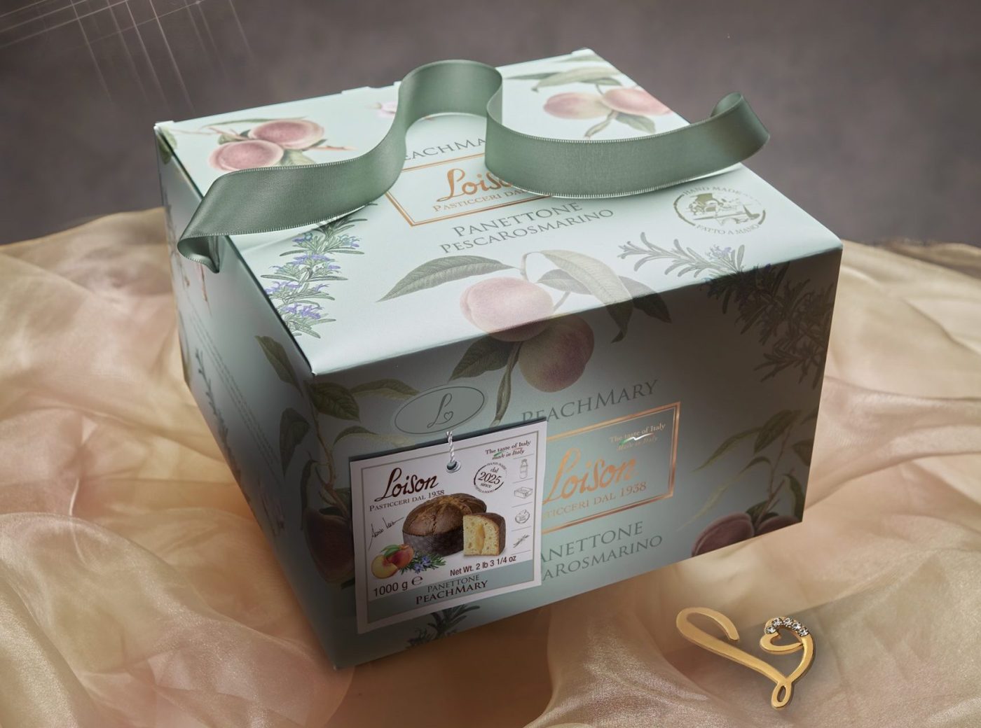 Partiamo con un esempio, ovvero con il protagonista assoluto del Natale 2025: il Panettone PeachMary®, l’ultima creazione di Dario Loison. Una rivoluzione delicata e gentile che unisce la dolcezza della pesca alla freschezza del rosmarino, con un tocco aromatico mai visto prima.