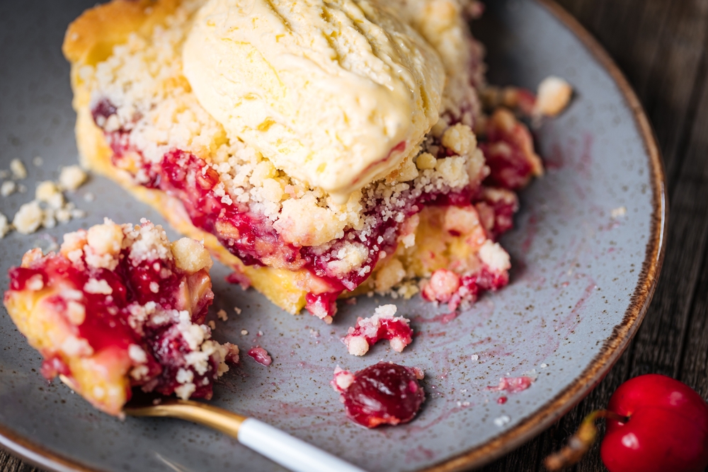 La crostata ricotta e visciola è dolce originale della pasticceria romana. Consiste nel raccogliere due strati di frolla croccante e racchiudere un ripieno di ricotta di pecora zuccherata e marmellata di visciole.