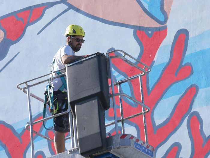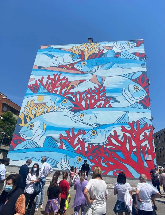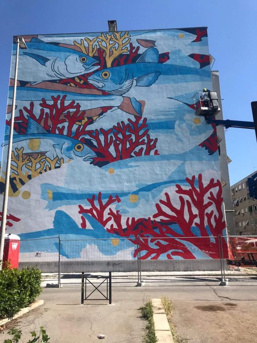 Un’intera parete del celebre quartiere popolare ha preso così le tinte del mare, tramite un intervento volto anche a rendere l’edilizia popolare più allegra e colorata. L’intera opera, infatti, è stata dapprima orientata al ripristino architettonico di una parete, resa sgargiante e piacevole con un murales che va oltre il mero omaggio alla biodiversità.