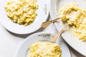 Gli bastarono solo tre ingredienti per preparare una pietanza che sarebbe poi divenuta famosissima soprattutto in America: fettuccine all’uovo, burro e parmigiano.