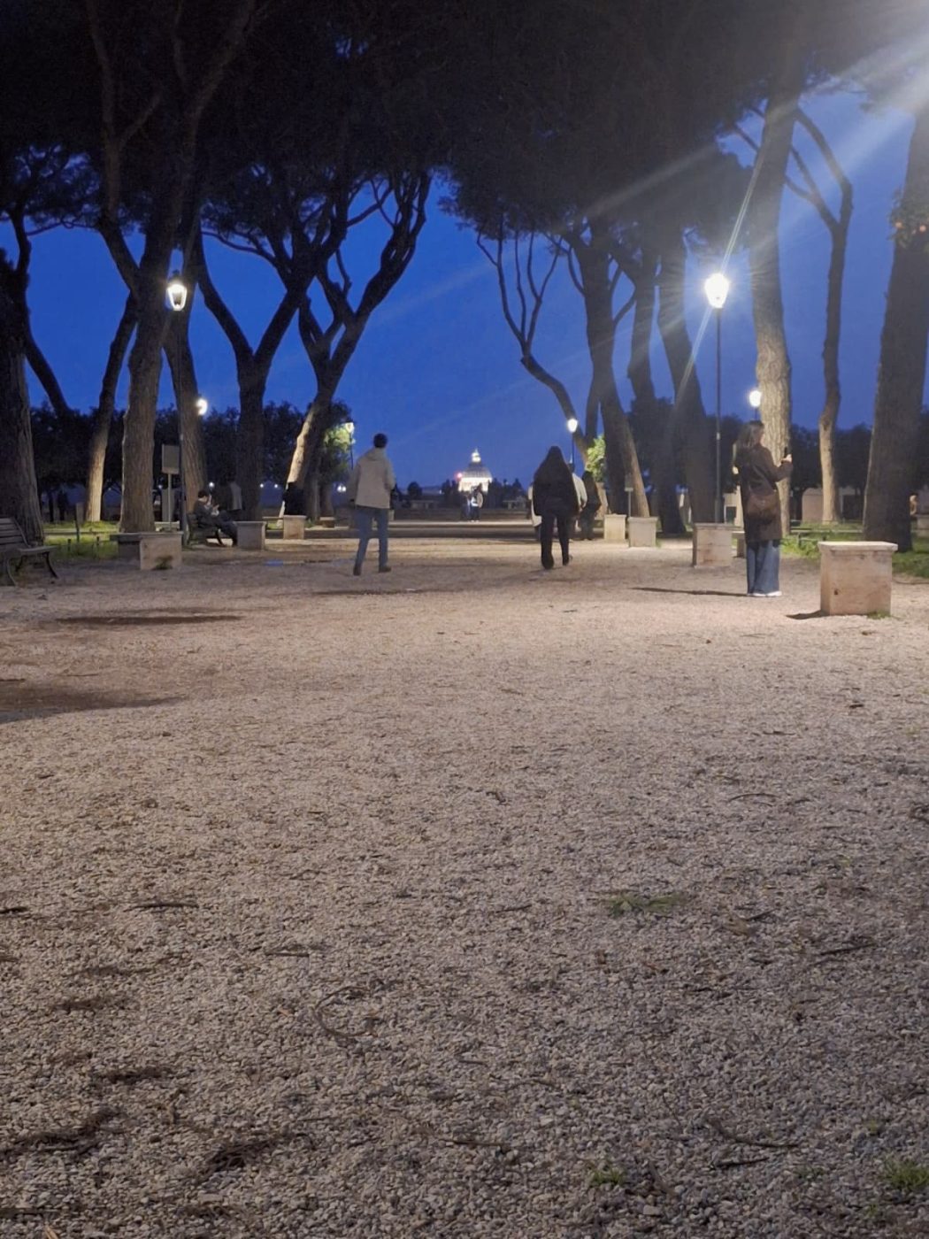 Andiamo con ordine e partiamo dal principio. Il meraviglioso effetto ottico del quale vogliamo parlarvi oggi nasce lungo il viale centrale del Giardino degli Aranci, dove la disposizione degli alberi e l’andamento leggermente rialzato del terreno guidano naturalmente lo sguardo. Da un punto preciso, la Cupola di San Pietro appare perfettamente incastonata tra le chiome degli aranci, come se fosse appoggiata su di esse.