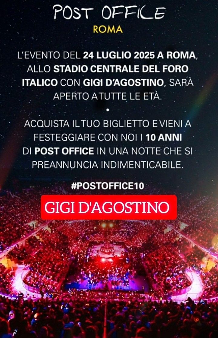 Il concerto sarà anche l’occasione per festeggiare i 10 anni di Post Office, realtà che ha contribuito a ridefinire l’intrattenimento dal vivo in Italia, portando nei suoi format una visione innovativa e inclusiva. Un anniversario speciale, che verrà celebrato insieme al vero protagonista di ogni evento: il pubblico.