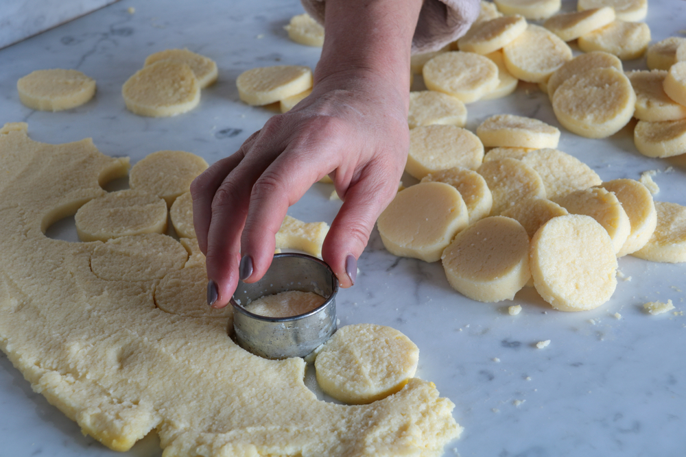 - Arrotolare gli impasti singolarmente in modo da creare una specie di salsicciotti dal diametro di 5-6 centimetri l’uno. Sigillare con la carta forno riporli in frigorifero a raffreddare per 30 minuti.