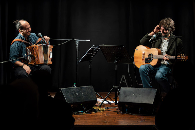 Al centro della serata le canzoni di Dduje paravise, il nuovo album pubblicato da Squilibri, in cui i due artisti firmano una sorprendente rilettura della canzone napoletana, intesa come territorio ampio, plurale e vivo. Un repertorio che attraversa epoche e stili, da Libero Bovio a Peppino Di Capri, da Sergio Bruni a Pino Daniele, passando per Renato Carosone e Roberto De Simone.