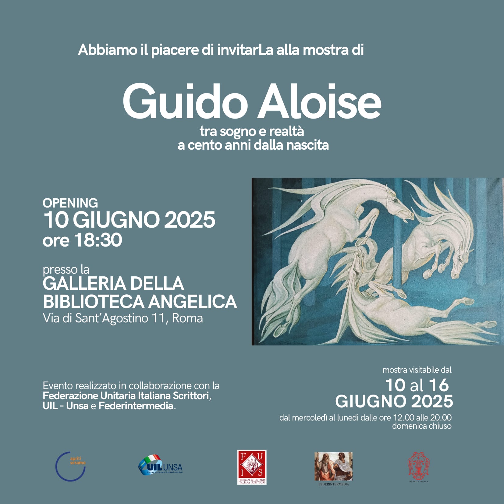In occasione del centenario della nascita, la Biblioteca Angelica di Roma ospita, dal 10 al 16 giugno, una mostra dedicata a Guido Aloise, artista che ha saputo raccontare l’uomo e il suo tempo con uno sguardo intimo, poetico e senza tempo.