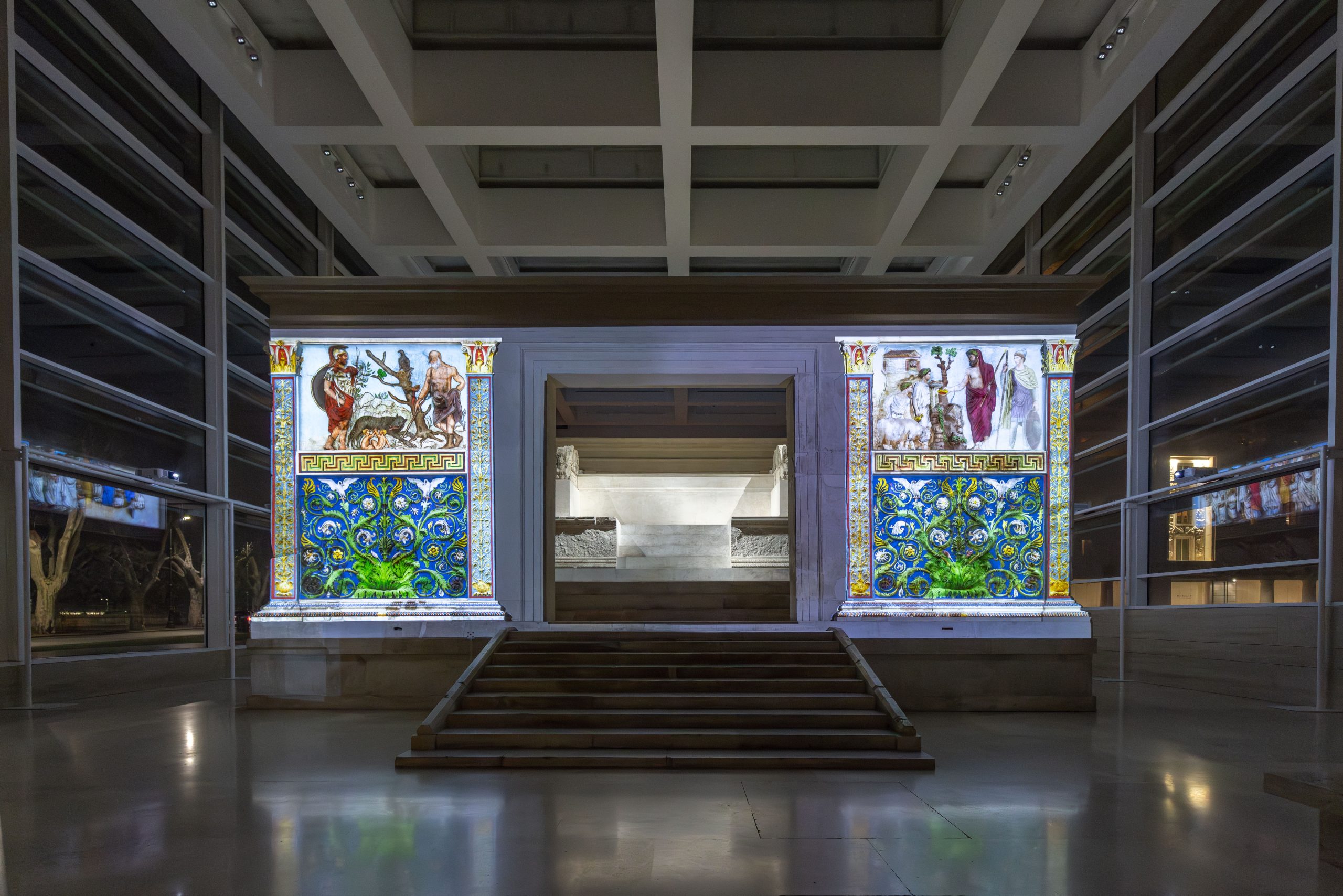 - Fregio Nord e Sud – la processione dei magistrati, sacerdoti e membri della famiglia imperiale, raccontata dalle loro voci.