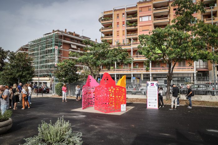 È stata inaugurata il 15 settembre 2022 l’opera del collettivo artistico femminile A m’l rum da me, donata dal centro McArthurGlen Castel Romano Designer Outlet installata al Municipio Roma VIII di via Benedetto Croce. Ad accoglierla il Presidente Amedeo Ciaccheri e l’Assessora alla Cultura e alle politiche di Genere Maya Vetri. Presenti all’incontro Monica Lucarelli, Assessora alle pari Opportunità e alle attività produttive di Roma Capitale, Elisa Ercoli Presidente Associazione Differenza Donna, Francesco Mancuso, Marketing Manager di Castel Romano Designer Outlet.