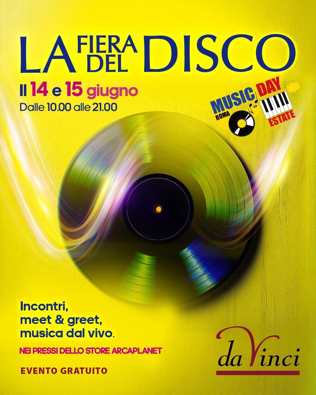 Il Parco Da Vinci ospita ancora una l’attesa Fiera del Disco di Roma: il più importante evento collezionistico dedicato agli appassionati della musica, sabato 14 e domenica 15 giugno, con ingresso gratuito a partire dalle ore 10
