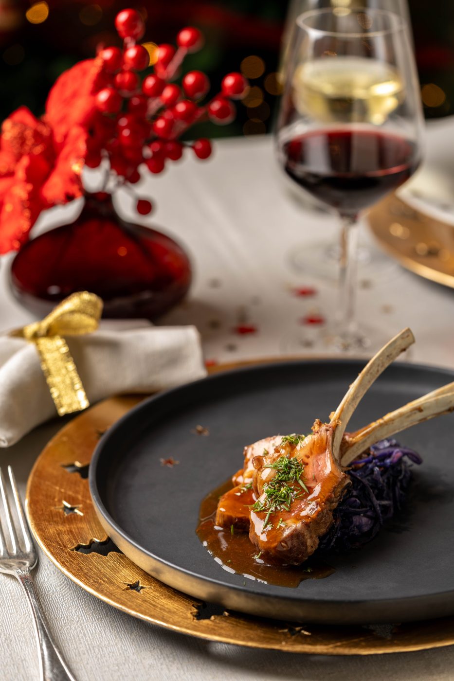 Il menu delle feste è un viaggio che parte da Roma e ritorna a Roma, passando idealmente per Bretagna, Normandia ed Estremo Oriente. Il risotto con lenticchie e petto d’anatra affumicato dialoga con la tradizione natalizia italiana, mentre il polpo in tempura con ceci e bottarga gioca su contrasti mediterranei dal respiro globale. Il carré di agnello alle erbe con cavolo rosso e cannella profuma d’inverno europeo, ma resta ancorato a una materia prima selezionata con rigore.