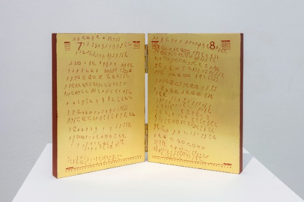 L’artista, affidando ad altre mani questi segni e immaginandoli come fossero partiture musicali, ha anche presentato a Trieste Contemporanea Compito #12, una tempera su foglia d’oro su tavola (Trieste Contemporanea, 2023), in una installazione sonora in cui Kolë Laca, Lodi Luka e Admir Shkurtaj hanno messo in musica i segni del diario in tre composizioni musicali.