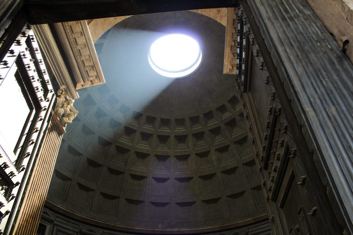 Riflettendo sul bronzo, i raggi del sole si irradiano creando un effetto scenografico, si direbbe teatrale. Il gioco di luce è stato accuratamente progettato durante la costruzione del Pantheon: ecco come e perché.